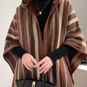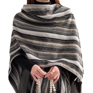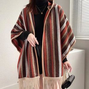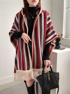民族風フード付きマント両用コート保温防風外にレトロなフリンジストライプのカーディガンで旅行します。