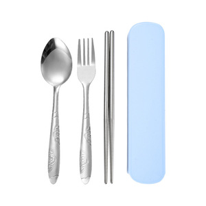 ステンレス携帯食器セット創意アウトドア箸フォークスプーン三点セットサラリーマンスプーンフォーク引き出し箱卸売り