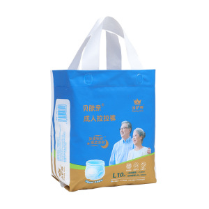 看護師の成人はズボンを引っ張ります。老人は尿が濡れません。