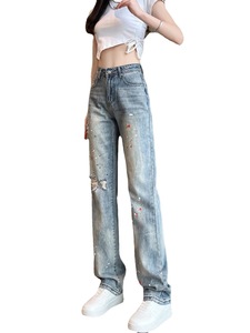 アメリカの墨をかけて穴を割ったジーパンの女性の秋のデザイン感が小さいです。