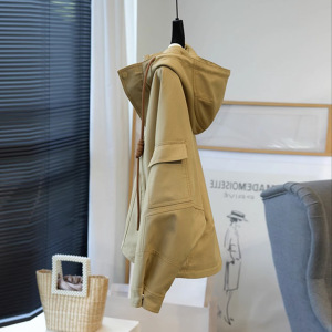 現物の小香風は今年はカーキ色の工装と帽子のコートが流行しています。