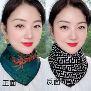 【両面マカオ綿三角タオル】秋冬首保護保温マフラー女性気質百合ファッション防寒多機能
