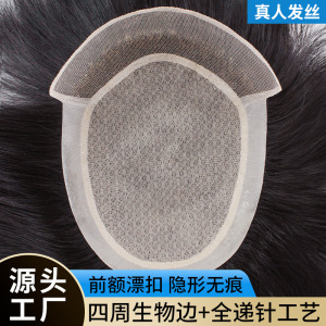 許昌メンズウィッグ、針編みヘアピース、ドロップシッピング、前髪ライン、ブリーチレースウィッグ、男性用本物の髪のウィッグ