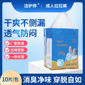 看護師の成人はズボンを引っ張ります。老人は尿が濡れないでズボンを引っ張ります。