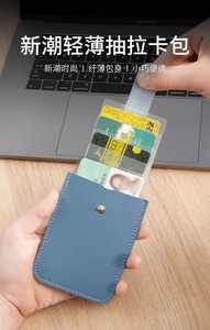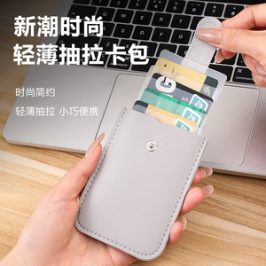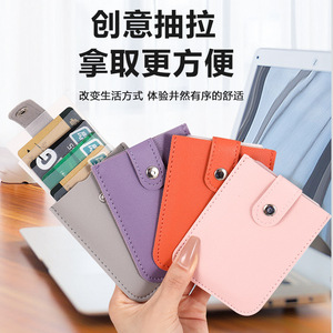 引き出し式カードカバー携帯袋多卡位大容量身分証明書銀行カード消磁防止皮質カードクリップ