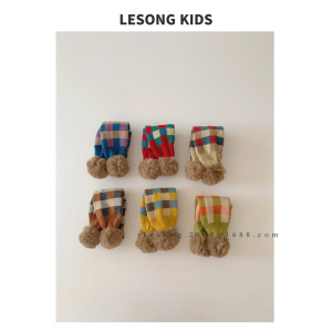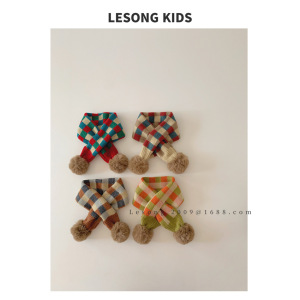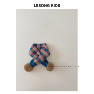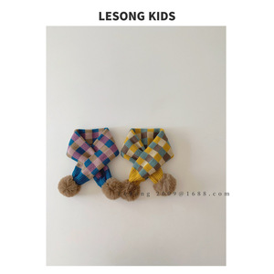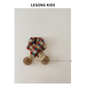 子供用マフラー秋冬ins韓国版新型レトロ格子色合わせ男の子女の子保温ニット赤ちゃんマフラー