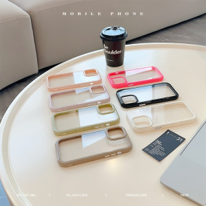クリーム色のiPhone16ProMax、iPhone15、iPhone13、iPhone14、iPhone17対応のアクリル製スマホケース。シンプルで高級感があります。
