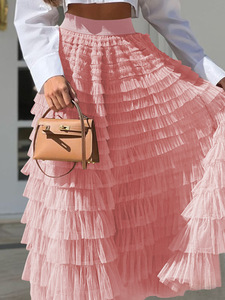 25秋の女性の無地スカートクロスボーダーヨーロッパとアメリカの気質エレガントなロングスカートハイウエストAラインふわふわメッシュケーキスカート