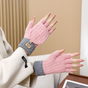 韓国版の冬の保温タッチパネルの指の手袋のぬいぐるみの厚い防寒の字のカバーの手袋の短い学生の手袋
