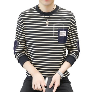 男性の秋の服のファッションブランドのカジュアルなストライプの底のシャツの男性の青少年の潮流の格好いい長袖のtシャツの男性の中で掛けます。