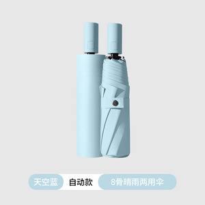 8本骨カラーハンドル自動傘 スカイブルー