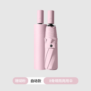 8本骨カラーハンドル自動傘 コーラルピンク
