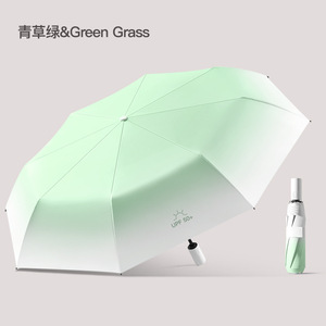 三つ折りグラデーション自動傘-青草緑