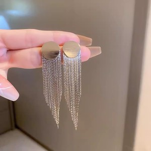 银针扭曲菱形长款金属链条流苏耳环欧美重金属风时尚耳坠耳饰