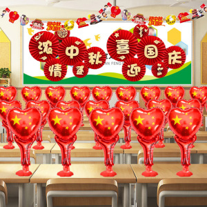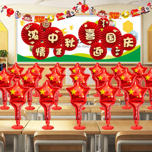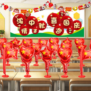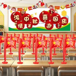 中秋節と建国記念日の店舗や幼稚園のイベント装飾シーンのレイアウトに、バルーンやジュエリーショップの装飾が施されています。