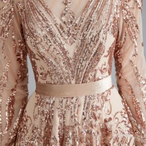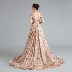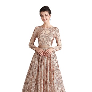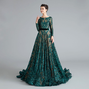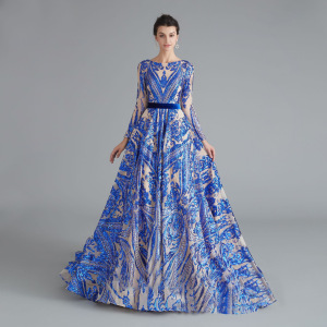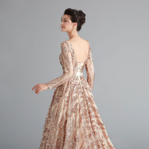2025年新作 気品あふれるエレガントなイブニングドレス、社交界の長袖ドレス、司会者風演出服、卸売