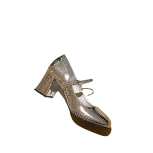 シルバーハイヒールの女性の 2025 秋と冬の新しい多用途スクエアトゥレトロウェディングシューズミッドヒール厚いヒールシングルシューズメリージェーンシューズ