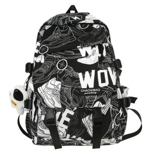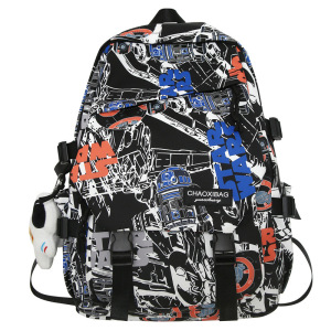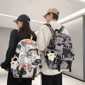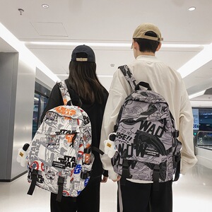 リュックサック男女潮牌ins日系個性落書き大容量と男性リュックサック高校のカバン男
