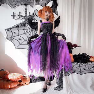 ハロウィーンの大人の服装の翼の暗黒天使cos鬼の花嫁の悪魔の女王は紫の魔女のワンピースを詰めます。