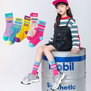 子供の靴下春秋冬の女の子の中で長い筒のアルファベットの靴下の運動の通気性の漫画の靴下の3-12歳の学生のファッションの靴下