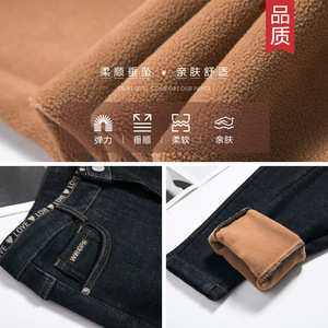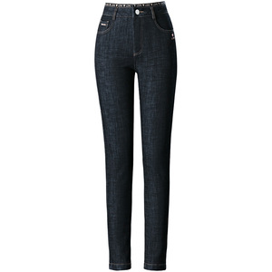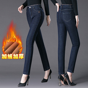 ジーパンの女性の冬の新型のベルベットの高腰のズボンはやせている中年のお母さんのズボンの大きいサイズの厚い足のズボンを現します。
