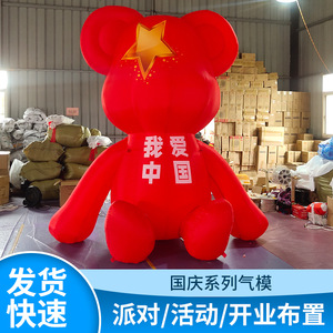 建国記念日用インフレータブル「愛中国」エアモデル、クマの漫画風モール装飾エアモデル、五芒星と赤旗のエアモデル