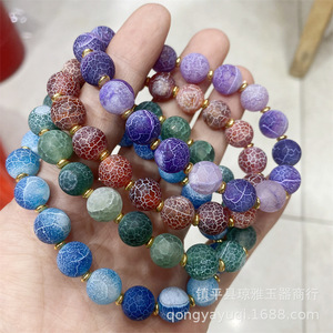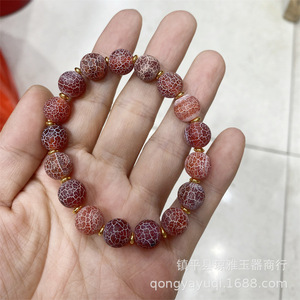 生中継ソース血胆金蓮手串西瑪雪霊満血七彩単輪ブレスレット風化瑪瑙龍紋手串