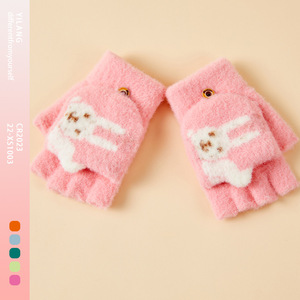 2025 新しい漫画秋と冬暖かいニット手袋卸売プラスベルベット防寒ハーフフィンガー手袋男性と女性のため