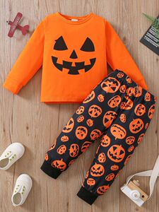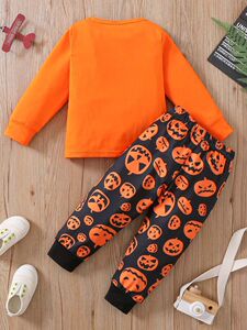 外国貿易ins春秋ハロウィーン日男の子満印カボチャランプセット女の子ファッション欧米風セット