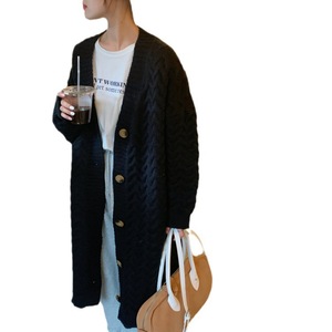 韓国厚いツイストレイジースタイルコート 2025 秋と冬ルーズスリムロング厚いカーディガンセータージャケット女性のための