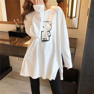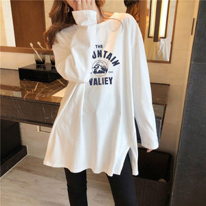 妊婦の秋服の上着の綿の中の長いタイプのゆったりしている減齢の長袖のtシャツのファッション的なタイプの底のシャツの秋冬の妊婦の上着