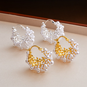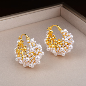 高級感のレトロな気質の耳は国境を越えて真珠のイヤリングの女性の甘い大衆の軽い豪華なめっきの18k金の耳飾りの卸売りを掛けます。