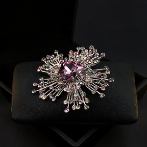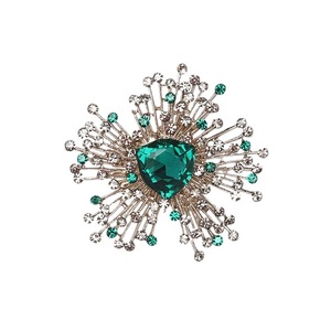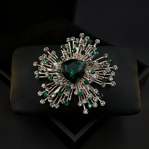 欧米の豪華な先祖の緑の水晶のブローチの女性の復古はファッションの胸の花の新型の気質を誇張します。