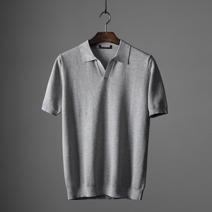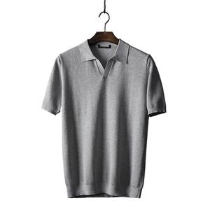 100コットン! パイナップル針! 夏カモメ襟通気性薄いvネック半袖男性ファッションカジュアルニットpoloシャツ