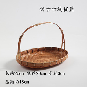 手作り竹編みバスケット家庭用ティープレート果物バスケット菓子トレイ創意竹バスケット結婚竹編みバスケット