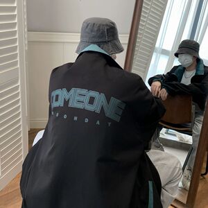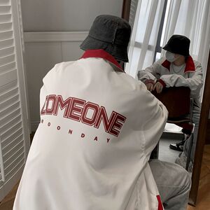 両面にコートを着ている男性は春秋のデザイン感があります。