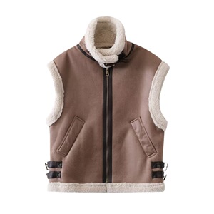 秋の新作婦人服、欧米風ファッション、トレンディなキャメルカラーのバイカーレザーベスト