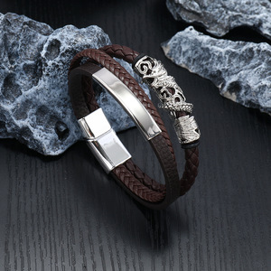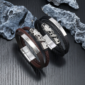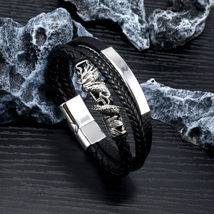 国境を越えた新型盤龍潮流男性パンク風編み皮ひも手環皮鎖チタン鋼多層皮革ブレスレット