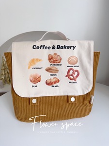 2023新型ins風韓版小衆オリジナル印パンコーデュロイダブルショルダーバッグ学生カバン