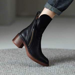 23秋の新型の厚い底の丸い頭は色の双ファスナーのマーティンの靴の女性を拭きます。