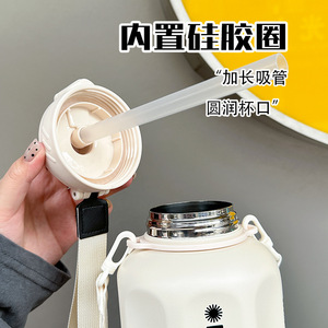 大容量保温カップ女子高颜値カップストロー付き携帯学生新2023かわいいカップシンプル