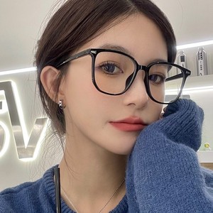 大きな黒いフレームtr大きなフレームメガネレディース高级感素颜神器insアンチブルーライト茶色ディスプレイ小さな目ミラーフレーム