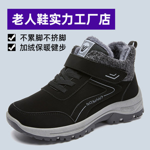 男性用冬用コットンシューズ、カップル用暖かいコットンブーツ、卸売、ベルベットと厚みのある中高年向けウォーキングシューズ、高齢者向け大きいサイズのスノーブーツ
