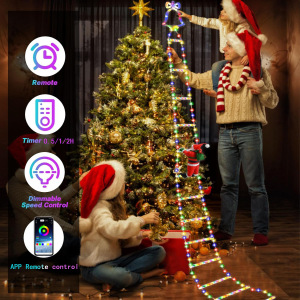 クリスマス装飾サンタクロースはしご灯串幻彩RGB灯串屋外クリスマス装飾階段灯