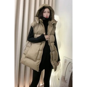 欧米の婦人服の中の長いタイプのダウン綿の外は馬甲の女性の秋冬の新型を着て、ゆったりしていて痩せているコートの綿の挟みを見せます。
