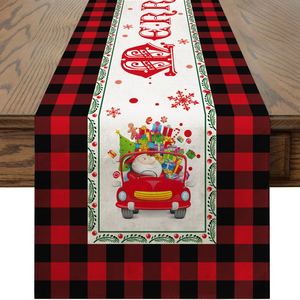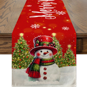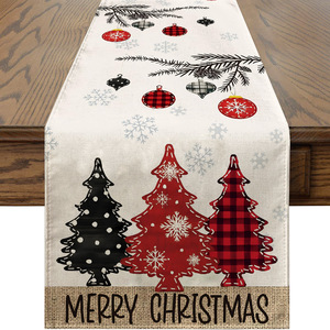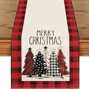 国境を越えた新しいクリスマステーブル旗は麻の生地の長いテーブルクロスのクリスマスの祝日の食卓の装飾をまねている