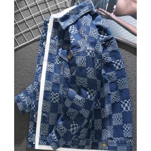 秋の若者向け韓国風スリムフィット万能デニムトップスメンズジャケットチェック柄配色韓国風スリムフィットジャケット