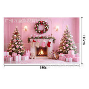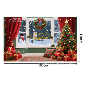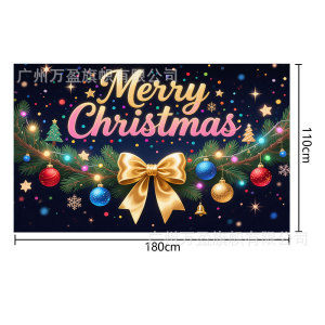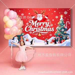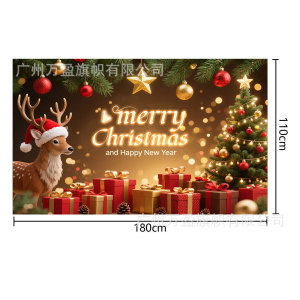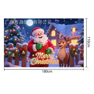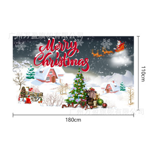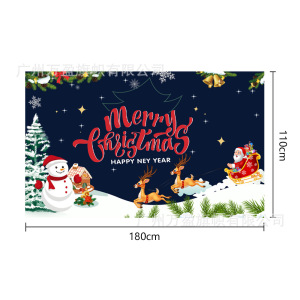 越境アマゾン新作クリスマス背景布 クリスマスハッピー道路標識 サンタクロース吊り下げ布飾り旗
