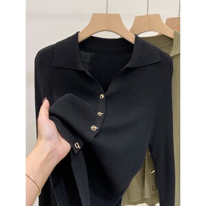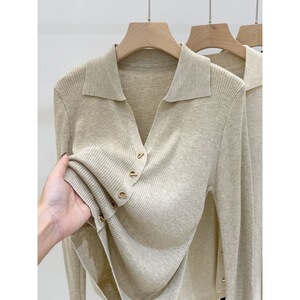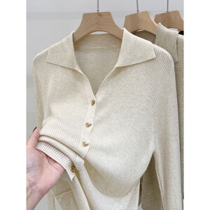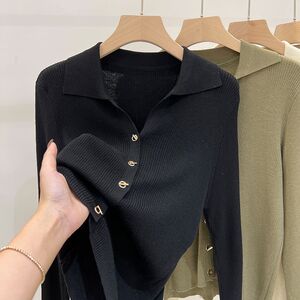 Poloの襟の気質の底のシャツの女性の春と秋の中は修身のデザイン感のセーターのカーディガンのニットの早春の上着を掛けます。