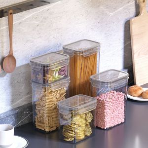 冷蔵庫の新鮮な箱の収納箱の透明な台所の食品はプラスチックの五穀の雑穀の家庭用の収納缶を密封します。